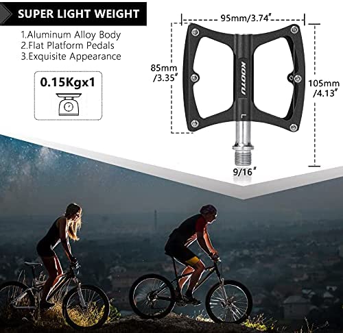 Bike Pedals, 9/16 Inch Bicycle Pedals for Mountain Bike, Aluminum Alloy Platform Bike Pedals, Anti-Slip Lightweight Bicycle Pedals for MTB, Road Bike, Folding Bike,Cruiser
