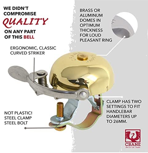 Bike Bell, Suzu Mini Bicycle Bell, Steel Clamp, Made in Japan for City Bikes, Cruisers, Road Bikes or MTB, Fits Handlebar diameters 22.2mm to 26.0mm