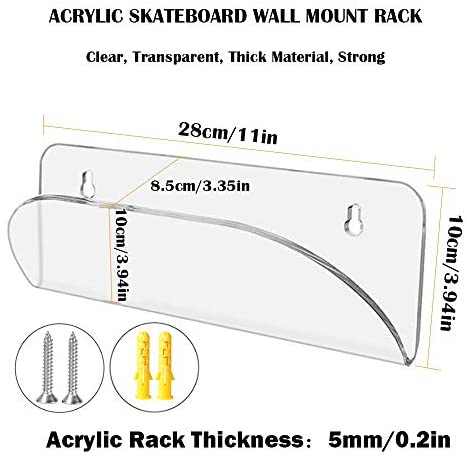 BiJun Skateboard Wall Mount, Longboard Invisible Clear Hanger Display Rack Shelf, for Fits Skateboard, Longboard, Skis, Snowboards, Water Skis and Electric Skateboard