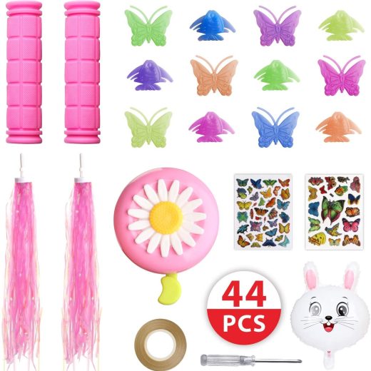 Bike Accessories for Kids Girls Bike Bicycle Decorations Including Pink Bike Handlebar Grips, Bike Streamers, Butterfly Bike Wheel Spokes, Flower Bell and Stickers,Rabbit Balloon u2026
