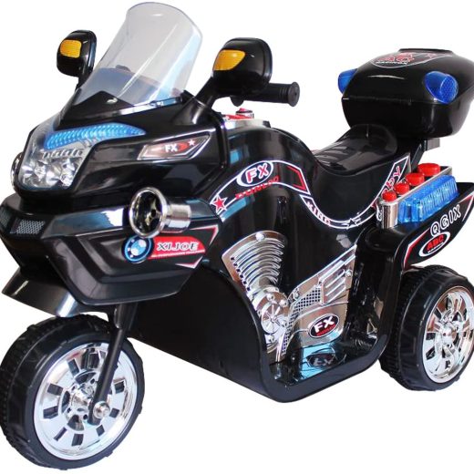 Electric Motorcycle for Kids u2013 3-Wheel Battery Powered Motorbike for Kids Ages 3 -6 u2013 Fun Decals, Reverse, and Headlights by Lilu2019 Rider (Black)