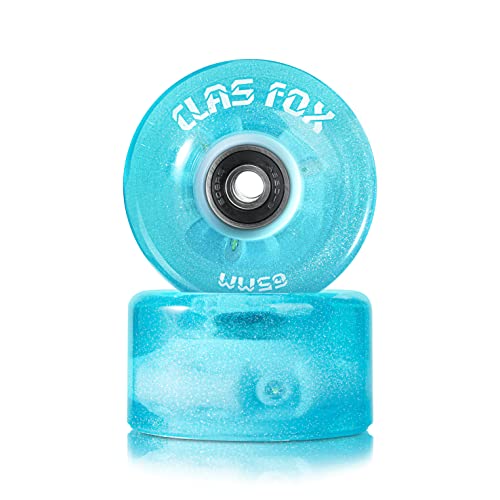 FOX Roller Skate Wheels Luminous Light up with Shining Dots and ABEC-9 Bearings Installed 65mm X 35mm 78A 8 PCS Outdoor or Indoor for Double Row Skating (Transparent)