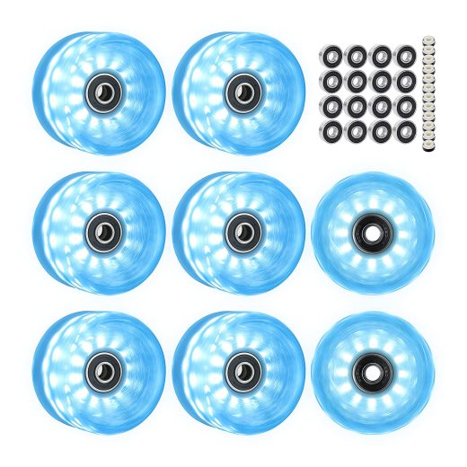 FOX Roller Skate Wheels Luminous Light up with Shining Dots and ABEC-9 Bearings Installed 65mm X 35mm 78A 8 PCS Outdoor or Indoor for Double Row Skating (Blue)