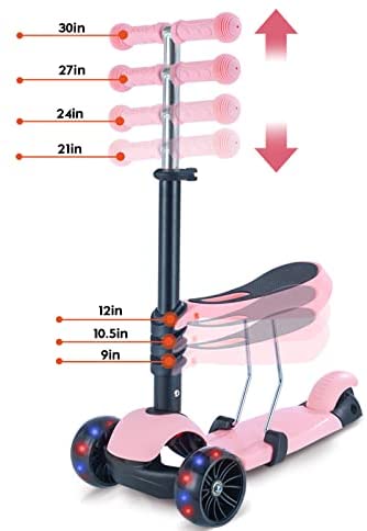 Kick Scooter for Kids Ages 3-12, Foldable & Adjustable Height with Removable Seat,3 LED Light Wheels, Outdoor Activities Sports for Boys Girls