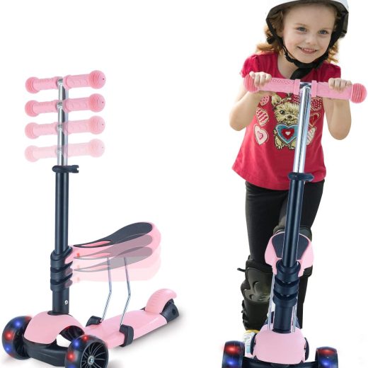 Kick Scooter for Girls & Boys with Cool Flashing Light Wheels, Adjustable Height, Folding and Rotating Seat, 3 Wheels Scooter with Variety of Color Style for Children Toddlers Kids