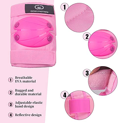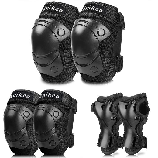 Kids Protective Gear – Knee Pads Elbow Pads Wrist Guard Set for Bike, Cycling, Roller Skating, Skateboard, Inline Skating, Hover Boards (Pink-black) (Black)