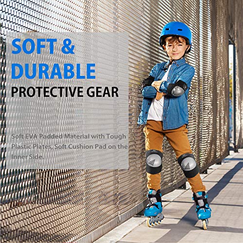 Kids Protective Gear, Kids Youth Knee Pads Elbow Pads Wrist Guards 6 in 1 Adjustable Age 4-13 Safety Gear for Roller Skating Cycling Skateboard Bike Scooter Rollerblading