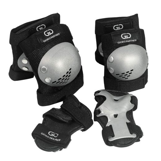 Kids Protective Gear Set with Soft Knee Pads, Elbow Pads, Wrist Guards for Children Toddler Skating, Cycling, Bike, Rollerblading, Scooter, Skateboard, Suitable for Boys Girls(Round,Silver,M)