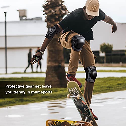 Kids/Youth Protective Gear, Knee Pads and Elbow Pads 6 in 1 Set with Wrist Guard and Adjustable Strap for Roller Skates Cycling BMX Bike Skateboard Inline Skatings Scooter Riding Sports(Black)