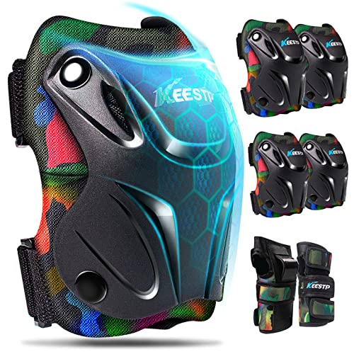 Knee Pads for Kids , Adjustable Kids Knee Pads Elbow Guards and Wrist Guards 6 in 1 Protective Gear Set (Camo/S)