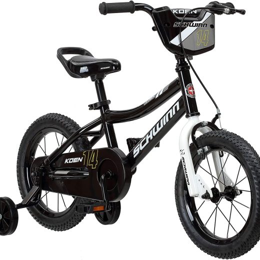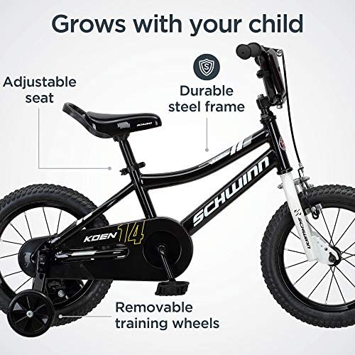 Koen & Elm Toddler and Kids Bike, 14-Inch Wheels, Training Wheels Included, Black