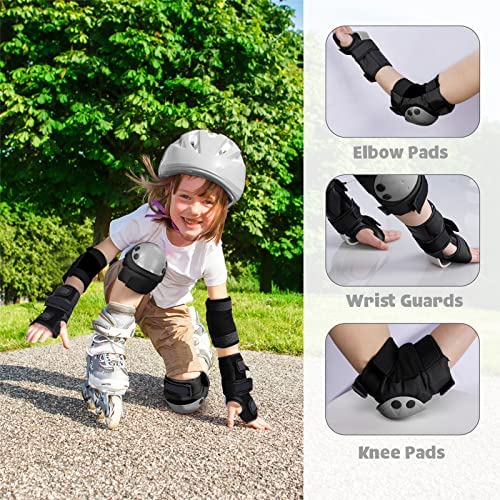 Knee Pads for Kids , Adjustable Kids Knee Pads Elbow Guards and Wrist Guards 6 in 1 Protective Gear Set (Black/L)
