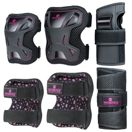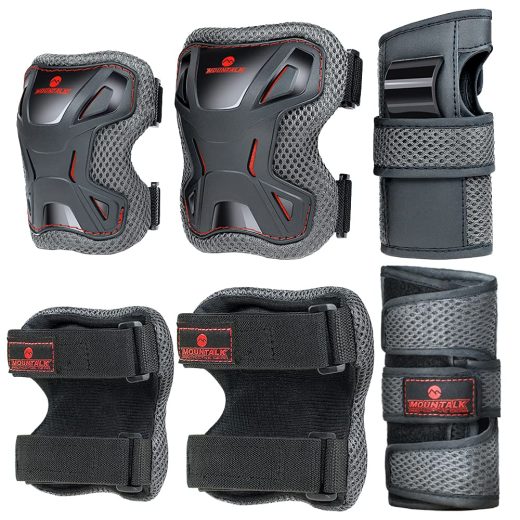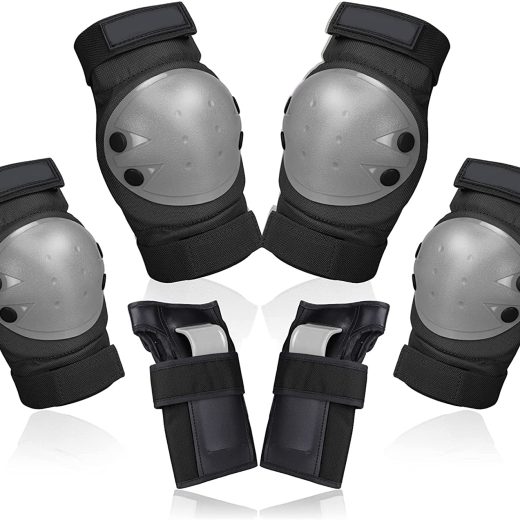 Knee Pads Set – 6 In 1 Protective Gear Set Knee Pads Elbow Pads and Wrist Guards for Kids Youth Adults Men and Women (Black, Small)