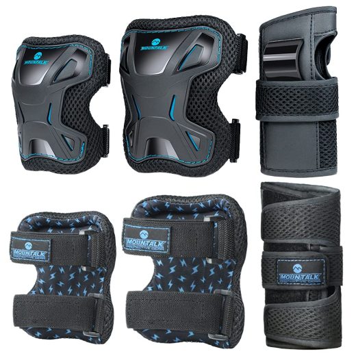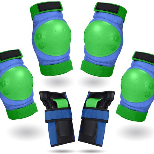 Knee Pads Set – 6 In 1 Protective Gear Set Knee Pads Elbow Pads and Wrist Guards for Kids Youth Adults Men and Women (Blue-Blue, Medium)