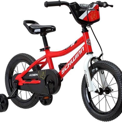 Koen & Elm Toddler and Kids Bike, 14-Inch Wheels, Training Wheels Included, Red
