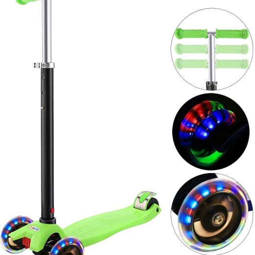 Scooter for Kids Toddler Kick Scooter with Foldable, Adjustable Height, Light Up 3-Wheels for Ages 3-12 Kids Balance Exercise