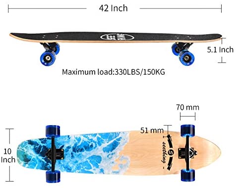 seething 42 Inch Longboard Skateboard Complete Cruiser Pintail,The Original Artisan Maple Skateboard Cruiser Pintail for Cruising, Carving, Free-Style and Downhill