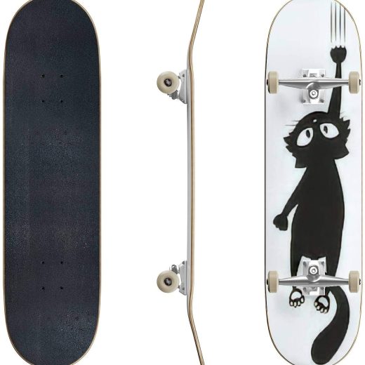 Skateboards Black cat Scratching The Wall Silhouette of Cartoon cat Climbing The Classic Concave Skateboard Cool Stuff Teen Gifts Longboard Extreme Sports for Beginners and Professionals