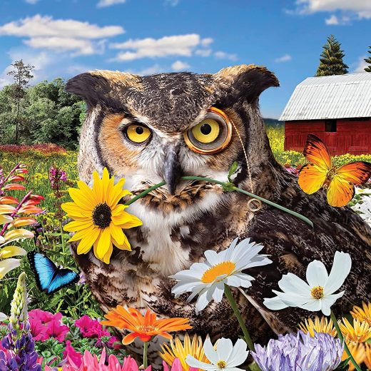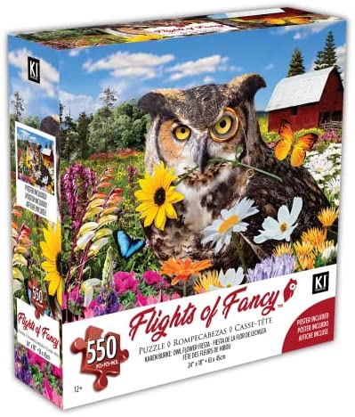 550 Piece Puzzle for Adults OWL Flower Fiesta by Karen Burke 24X18 Whimsical Jigsaw from KI Puzzles Flights of Fancy Collection