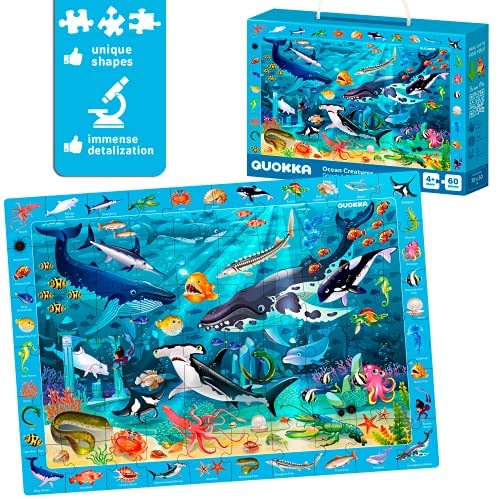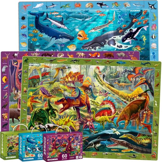 60 Pieces Floor Puzzles for Kids Ages 4-8 u2013 3 Big Toddler Jigsaw Puzzles 3-5 Years Old by Quokka u2013 Search & Find Game for Learning Ocean Wild Animals & Dinosaurs – Gift Toys for Boy & Girl 6-8-10