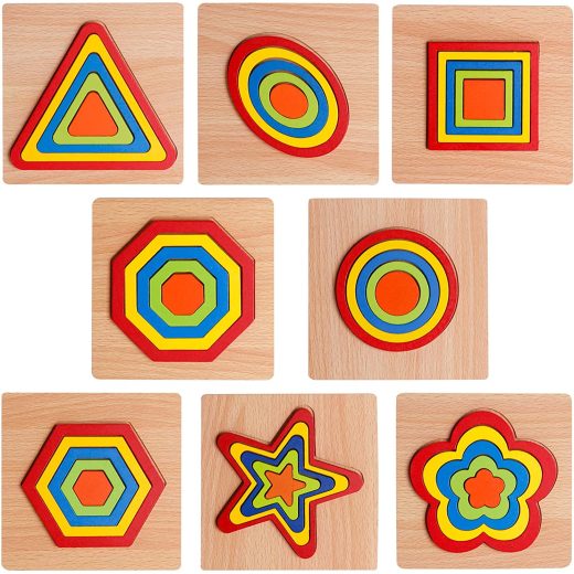 8 pcs Shape Puzzle Toddler Puzzles Games Wooden Toys Montessori Shape Sorting Puzzle Toddlers Activities Preschool Learning Early Educational Gift for Kids Age 3 4 5 6 Year Old