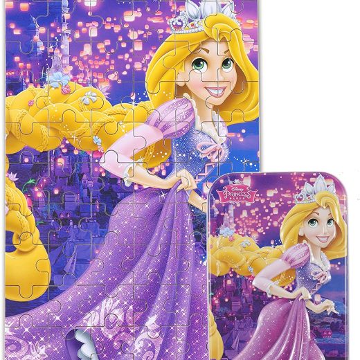 60 Pieces Rapunzel Puzzles for Kids in a Metal Box Princess Wooden Jigsaw Puzzle for Children Girls Ages 4-8 Learning Educational Puzzles Toy
