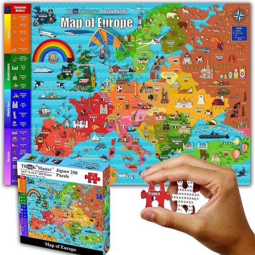 Think2Master Colorful Map of Europe 250 Pieces Jigsaw Puzzle Fun Educational Toy for Kids, School & Families. Great Gift for Boys & Girls Ages 8+ for Learning European History. Size: 14.2u201d X 19.3u201d