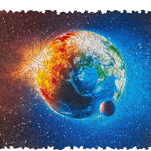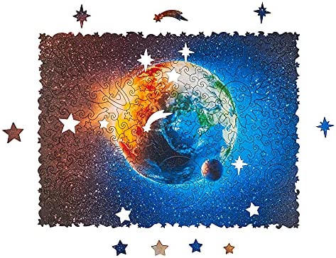 Unidragon Wooden Puzzle Jigsaw, Best Gift for Adults and Kids, Unique Shape Jigsaw Pieces Space Planet Earth, 12.2 x 9 inches, 250 pieces, Medium