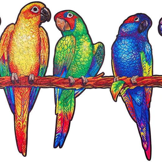 UNIDRAGON Wooden Jigsaw Puzzle, Playful Parrots, Best Gift for Adults and Kids, Unique Shape Jigsaw Pieces – 620 pcs, 28.4