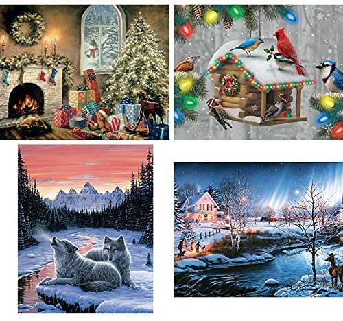 Bits and Pieces-1000 Piece Jigsaw Puzzle for Adults- Country Living 4-in-1 – Four 1000 pc Puzzle Multipack Autumn Flower Winter Bird Snow Rabbit Barn Farm Dog Holiday Jigsaw by Artist Larry Jones