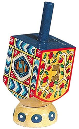 Yair Emanuel Small Wooden Dreidel with Stand – Floral Pattern