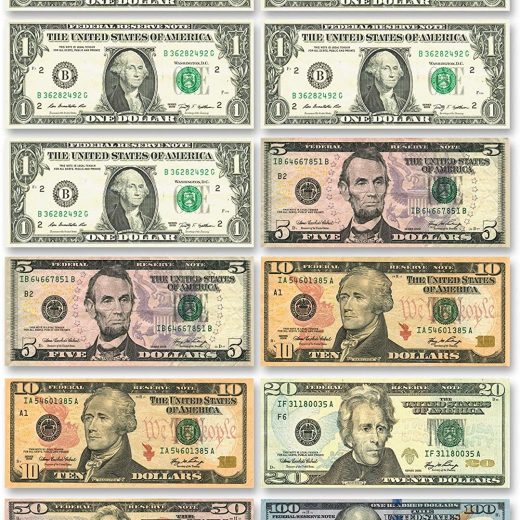 Ashley US Dollar Bill Set Die-Cut Decorative Magnet, Multicolor