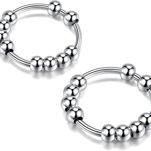 2Pcs Anxiety Ring for Women Spinner Anti Anxiety Fidget Ring with Beads Rings for Women Men Boys