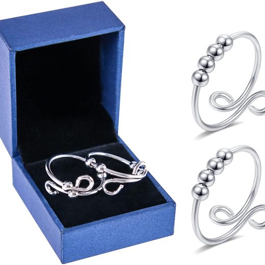 2Pcs Fidget Anxiety Ring with Beads Adjustable Stress Relief Ring Spinner Ring for Women Men