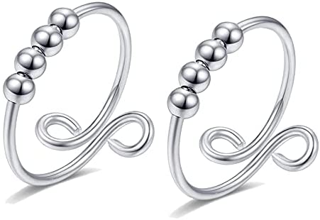 2Pcs Fidget Anxiety Ring with Beads Adjustable Stress Relief Ring Spinner Ring for Women Men