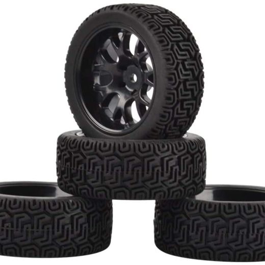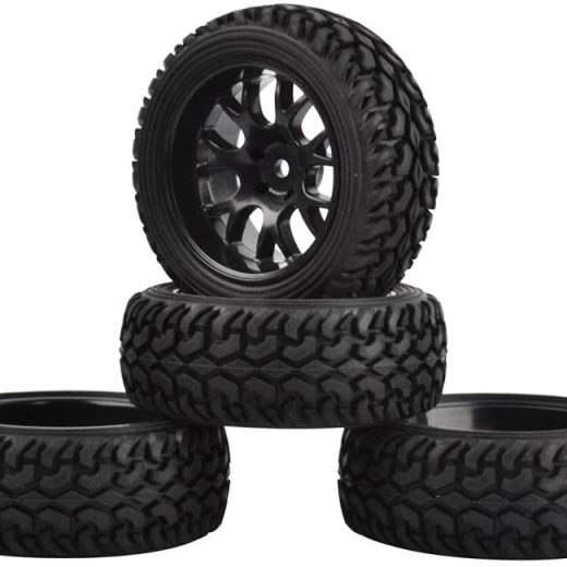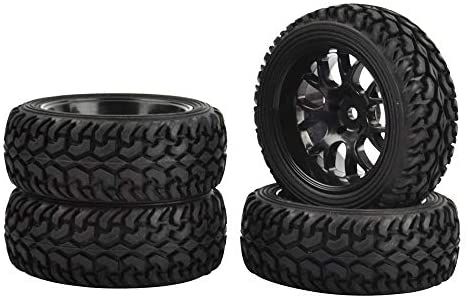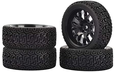 1/10 Rally Car Wheel and Tire for 1/10 RC On Road Car Traxxas HSP Tamiya HPI Kyosho RC Car (Black)