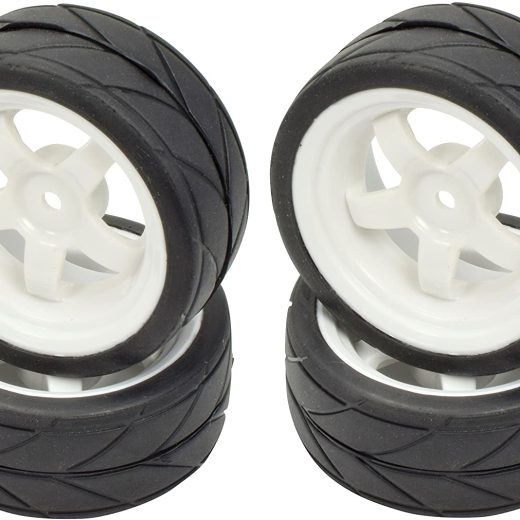1/10 On-Road 12mm White Split 5 Spoke Wheels V Tread Rubber Tires (Set of 4) #5016