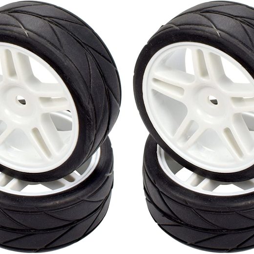 1/10 On-Road 12mm White 5 Spoke Wheels V Tread Rubber Tires (Set of 4) #5015