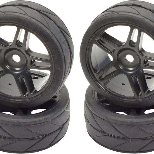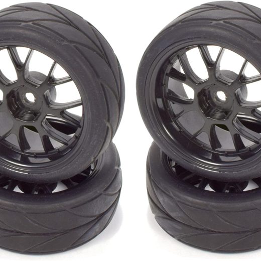 1/10 On-Road 12mm Black Mesh Wheels V Tread Rubber Tires (Set of 4) #5002