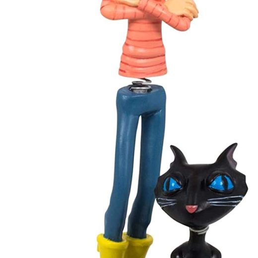 Surreal Entertainment Coraline with Cat PVC Bobble Figure Statue | Collectible Bobblehead Action Figure, Desk Toy Accessories | Novelty Gifts for Home Office Decor | 6.5 Inches Tall,Blue