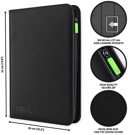 Vault X Premium eXo-Tec Zip Binder – 4 Pocket Trading Card Album Folder – 160 Side Loading Pocket Binder for TCG