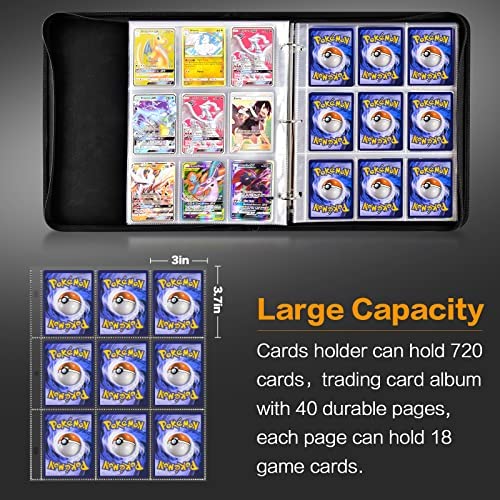 Card Binder for PM Trading Cards, 720 Pocket Cards Sleeves Holder Album, Carrying Storage Collector Cover for TCG, C.A.H, Baseball Cards with 40 Premium 18-Pocket Sheets