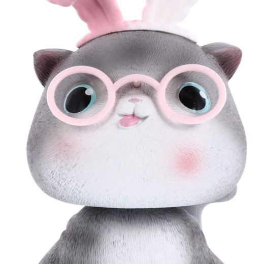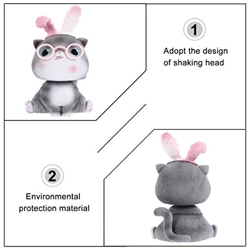 Amosfun Cat Bobblehead Ornaments Shaking Head Rabbit Ear Lucky Cat Figurines Animal Dancing Figure Toy Car Dashboard Decorations for Vehicle Home Office Desktop (Grey A)