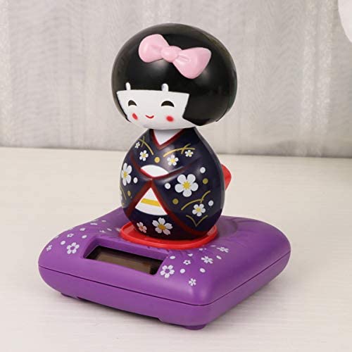 Amosfun Solar Powered Dancing Toy Kimono Doll Figures Bobbleheads Dashboard Car Ornament for Car Dashboard Office Desk Decoration (Purple)