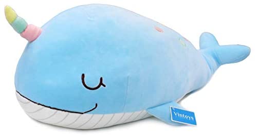 Vintoys Soft Narwhal Unicorn Whale Hugging Pillow Plush Doll Fish Plush Toy Stuffed Animals Blue 21
