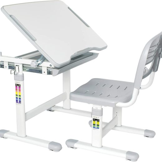 VIVO Gray Height Adjustable Childrens Desk and Chair Set | Kids Interactive Workstation