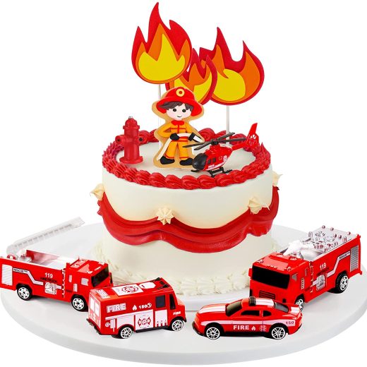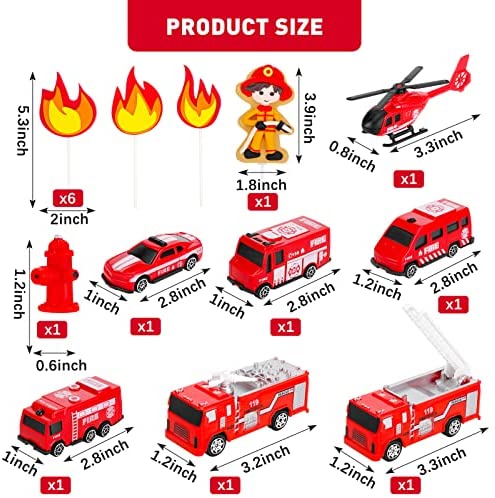 15 Pieces Fire Truck Cake topper Fireman Cake Topper Firetruck Birthday Decorations for Boys for Fireman Fire Trucks Birthday Party Cake Decoration Supplies