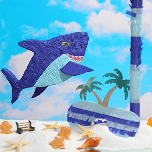 15.7 Inch Shark Party Pinata Mexican Pinata with a Blindfold and Bat and Round Tissue Papes for Summer Decoration Photo Prop Candy Holder and Party