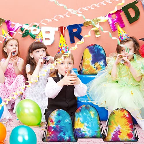 15 Pieces Tie Dye Bags Drawstring Camouflage Treat Bags Fabric Drawstring Bag Colorful Goody Bags Retro Tote Backpack Small Heavy Duty Travel Gym Sack Party Favor Decoration (Cute Style)