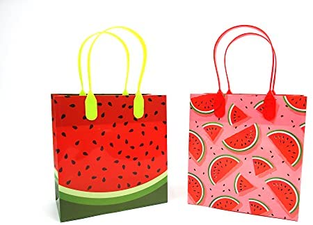 TINYMILLS Watermelon Party Favor Treat Bags- Watermelon Goody Bags with Handles for Birthday Party Baby Shower, Pack of 12
